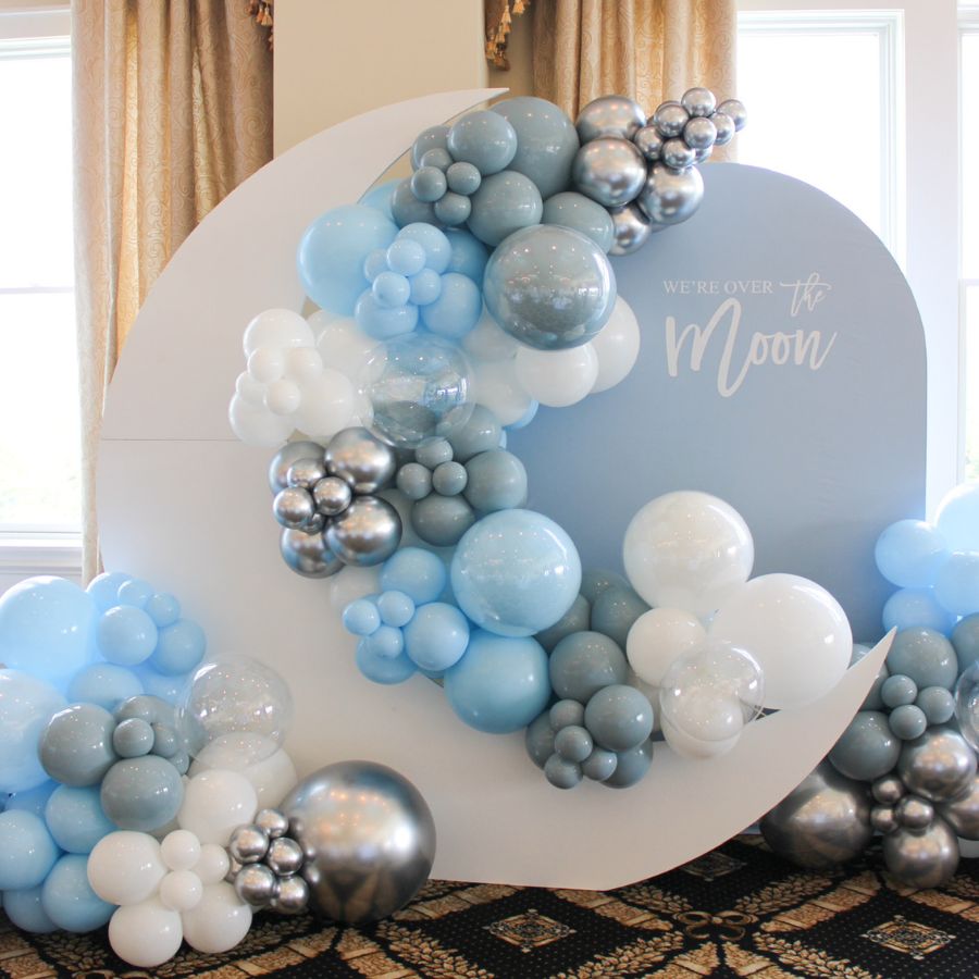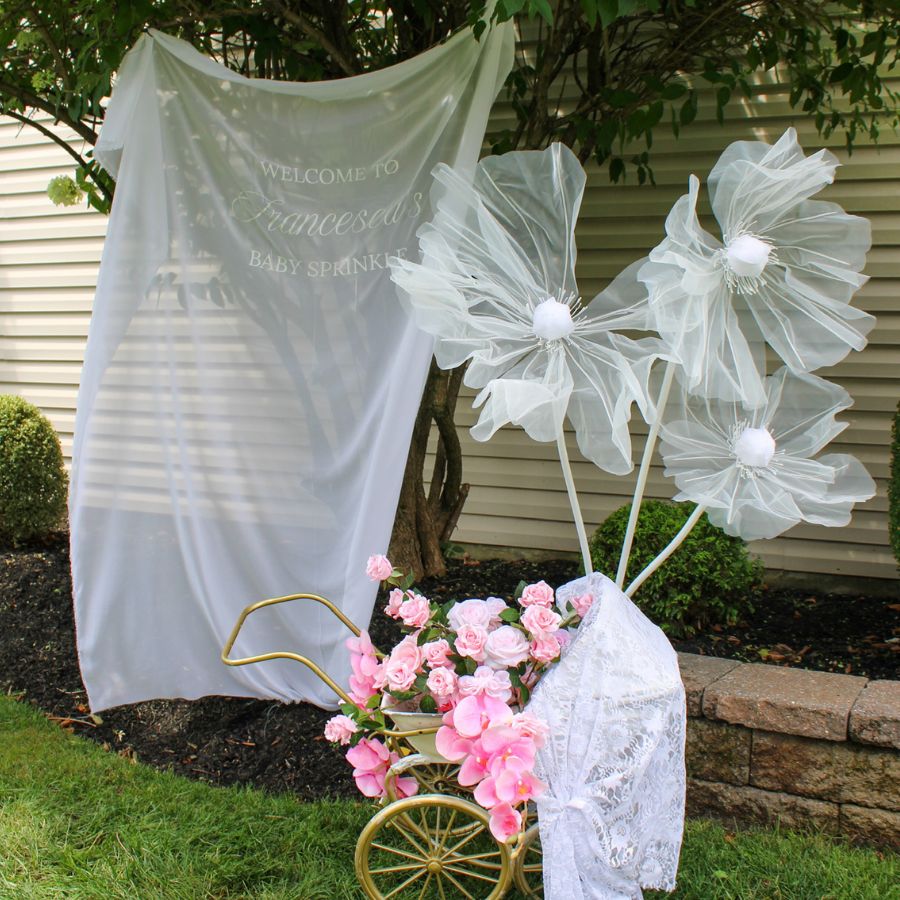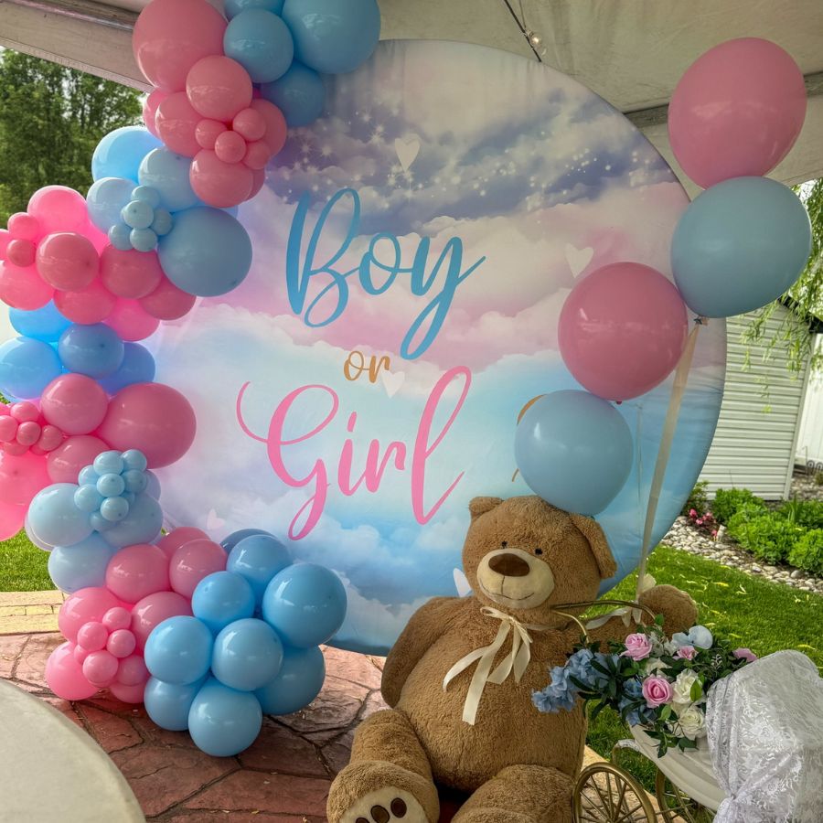 Create a charming focal point with decorative backdrops — perfect for balloon garlands, themed décor, or a photo area for parents-to-be.
